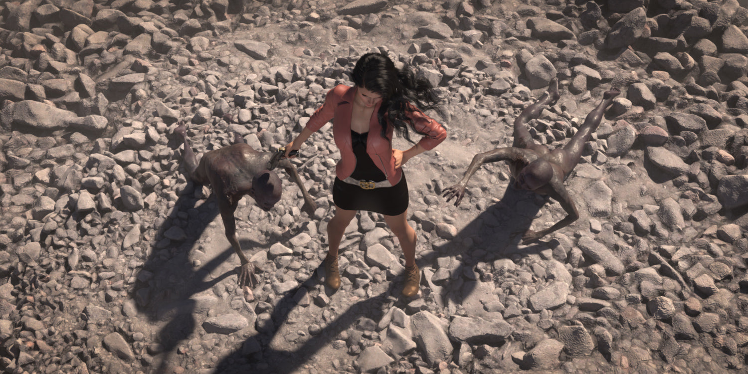 This cool set for DAZ Studio inspired by Resident Evil Requiem features an extruded 2.5D background paired with a high resolution HD scan center, additional fog effects, an Iray render preset, and a camera preset. It makes it quick and easy to get photo real renders out of the box. The clever design of these backgrounds give you 30% camera freedom around your character. Just place your vehicle or character, adjust the camera, down to their feet and hit render.
