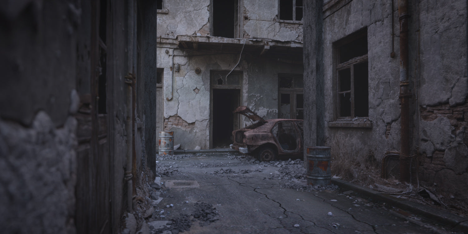 This stunning cinematic scenery for DAZ Studio features tight post apocalyptic urban streets with additional HD scanned assets for extra detail. Inspired by Resident Evil Requiem, it's a spectacular scenery for close encounters with zombies and monsters.
